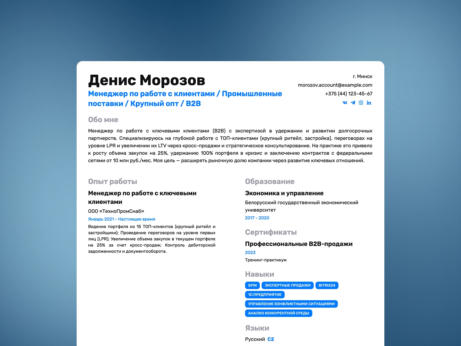- Ссылка на профиль в LinkedIn;