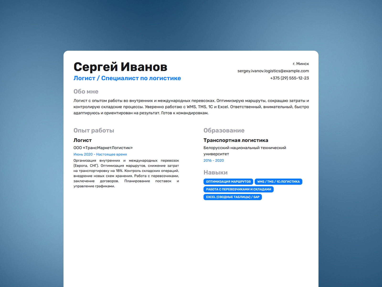 Резюме логиста: Готовый пример резюме 2025 с шаблоном