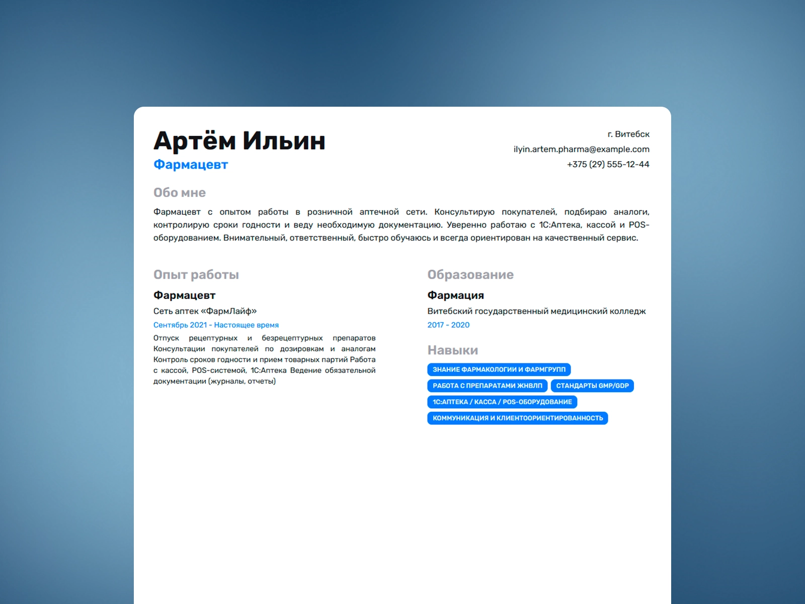 Резюме фармацевта: Готовый пример резюме 2025 с шаблоном